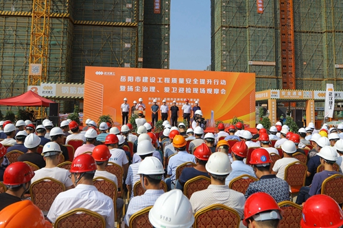 9月5日,湖南省岳陽市住房和城鄉建設局在武漢建工岳陽恒大未來城二期項目舉辦全市建設工程質量安全現場觀摩會。來自岳陽市149家單位的建設、施工、監理等專業人員共200余人參加觀摩,岳陽市住房和城鄉建設局黨組書記、局長周金龍出席活動。