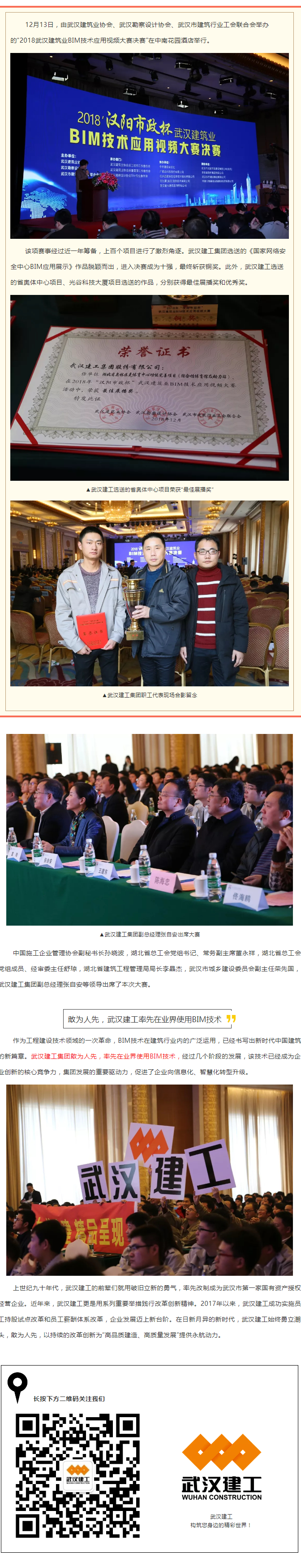 武漢市十強!最佳展播獎! 武漢建工在BIM技術應用視頻大賽上再創佳績!