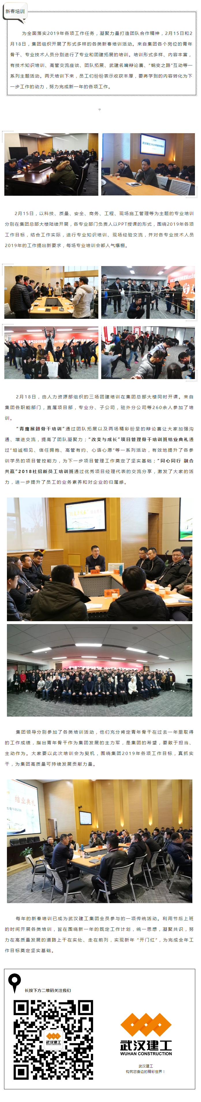 2月18日,武漢建工集團(tuán)召開2019年經(jīng)營(yíng)工作會(huì)議。會(huì)議全面總結(jié)了2018年經(jīng)濟(jì)工作,分析當(dāng)前經(jīng)營(yíng)形勢(shì),安排部署2019年經(jīng)濟(jì)工作,動(dòng)員集團(tuán)上下凝心聚力,為實(shí)現(xiàn)2019年工作目標(biāo)而努力奮斗。