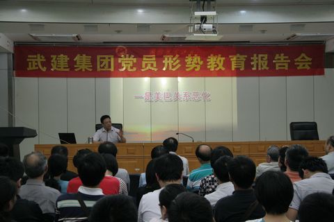 目前,我國周邊安全形勢(shì)問題是廣大黨員關(guān)心的熱點(diǎn)問題之一。為了進(jìn)一步培養(yǎng)廣大黨員的愛國情感和國防意識(shí),正確了解當(dāng)前形勢(shì),認(rèn)識(shí)安全穩(wěn)定的重要性,5月16日下午,武建集團(tuán)邀請(qǐng)海軍工程大學(xué)理學(xué)院人文社科系教授、武漢名家論壇主講人黃友牛,來集團(tuán)作國防形勢(shì)教育報(bào)告會(huì)。來自集團(tuán)各單位的黨員、積極分子260余人參加了報(bào)告會(huì)。